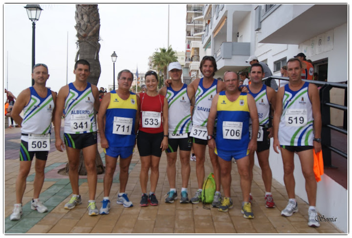 Un minuto antes de darse la salida, Alberto me comentó ¡ Illo, Matraca, en primera fila, no sabes na, pa Sali en la foto!¡Lo mejor para salir en la foto es ponerse al lado tuya máquina, que está tú mujer con la cámara, jejejeje!. A las nueve y media de la mañana se dio la salida, saliendo fuerte, intentando llevar un ritmo homogéneo desde el comienzo. Voy en el grupo de cabeza en los primeros 300 metros, flipando en colores, ya que el compañero de fatigas Nacho del Club Atletismo Nueva Jarilla se marchaba unos metros, siendo en esos momentos “The especial one”, el mejoonnnn con dos coooneeesssss. Aflojo un poco el ritmo, ya que el Gps marcaba 3.38 km ¡Aguanta er genio pisha, que queda mucha tela que cortar! El primer kilómetro lo paso en 3.53 km, estando unos metros más adelante mi mujer cámara en mano, con mis hijas (un año más, fieles a la cita), instándome éstas a chocarles las manos.